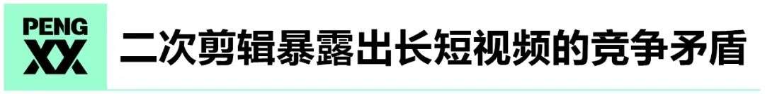 可以说,国内的长短视频之战,迟早都会发生,而现在的“二次剪辑类视频”可能就正是大战爆发的前兆。