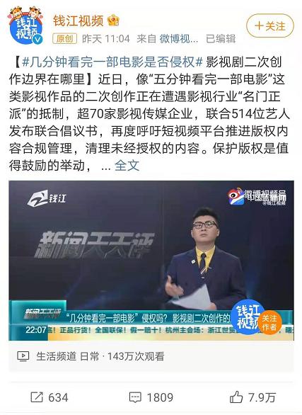 不过,就在此次版权大战爆发以后,也有一种声音占据了舆论的上风,那就是很多业内人士提出的,在近几年的影视生态环境中,抖音、快手上的各种二次剪辑类短视频实际上还承担着宣传营销的作用,甚至很多影视出品公司都与这些视频号主有相关的业务合作,对于它们好像也不能一棍子打死。