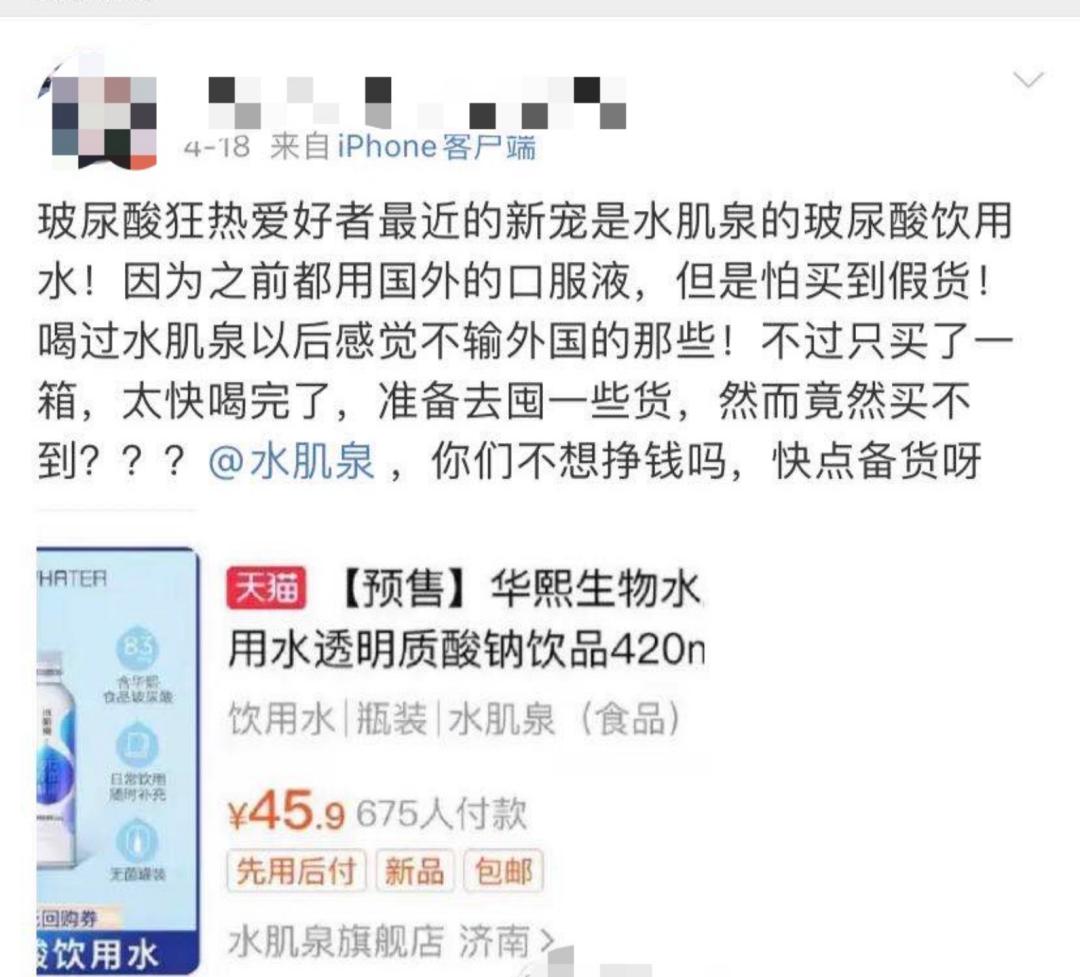 8元一瓶的“玻尿酸水”刷爆社交媒体,一场商家们的自嗨?