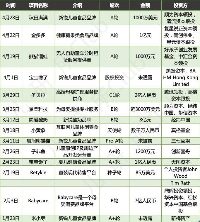 儿童消费赛道第14笔投融资诞生,哪个金主爸爸最活跃?
