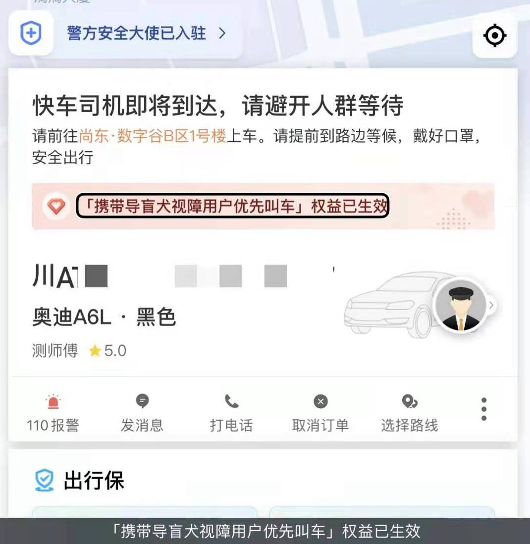 滴滴上线导盲犬无障碍服务订单,为用户优先派单