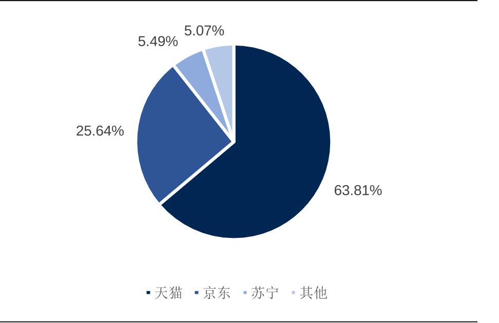 可以肯定的是,在线上市场的争夺战之中,头部企业占据绝对优势。尤其是三大巨头天猫、京东和苏宁占据了线上市场的绝大份额,其中2020年B2C市场份额的比例中,天猫占到了63.81%,其次是京东,占到了25.64%,第三是苏宁有5.49%,其它零售商仅仅占到5.07%,比苏宁的市场份额占比还略少一些。如今,基于这种现象,更多的头部企业在致力于打通线上线下全渠道的经营模式,线下发展的潜力还在挖掘阶段。