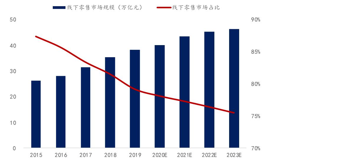 中国线下零售市场规模及占比/资料来源:艾瑞咨询,国海证券研究所