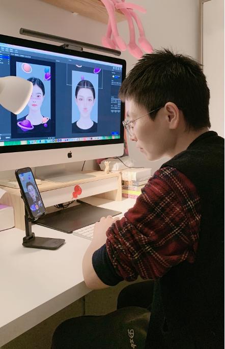 今年春节前,一个设计师朋友推荐她试试做特效师。几乎从不自拍,更没用过美颜的她眉头一皱,问对方,“魔表是什么?”
