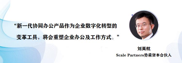 Scale Partners 势乘资本合伙人刘英航表示,“云化、正版化、国产替代浪潮迭起,产业变革驱动行业加速。新一代协同办公产品作为企业数字化转型的变革工具,将会重塑企业办公及工作方式。创业者如果能把握住产业和技术变革机遇,以创新产品切入细分市场,打造独特竞争优势,将能成为协同办公领域新一代领军企业,并且掌握B端服务的入口。