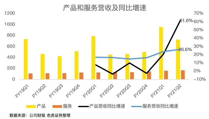 在Q2中,产品销售收入实现726.8亿美元,同比增长61.6%,超越53.6%的整体营收增速,是Q2财报大超预期的主要原因。