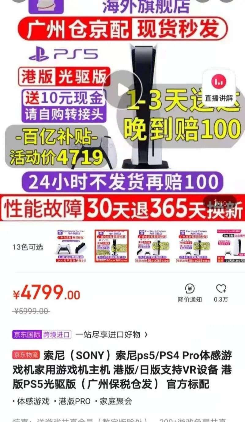 之后价格逐步趋向正常。到国行发布前一天,国内某销售平台上,海外版PS5(带光驱)售价已降至4799元。即便如此,国行光驱版相较之下还是便宜了整整900元。