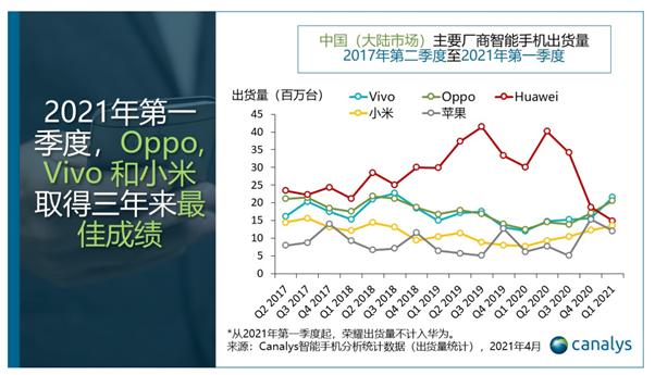 Canalys研究分析师Amber Liu表示:“中国智能手机市场重拾了往日的繁荣,领先玩家们竞相发力冲向市场巅峰,与2020年第1季度甚至2020年第4季度相比,本季度智能手机的发布数量异常之多。随着消费者和渠道对替代品牌持更加开放的态度,美国对华为的制裁与荣耀的独立成为了市场新一轮增长的标志。”