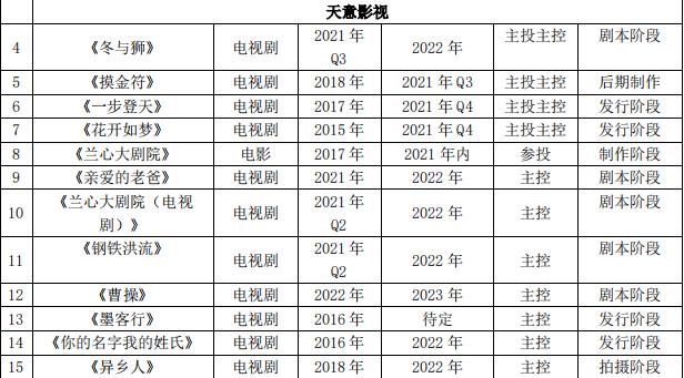也是基于此,唐德影视找到国资作为救命稻草,于去年引入浙江广电。据年报信息,公司2021年计划投资、拍摄的电视剧有8部、电影有4部。