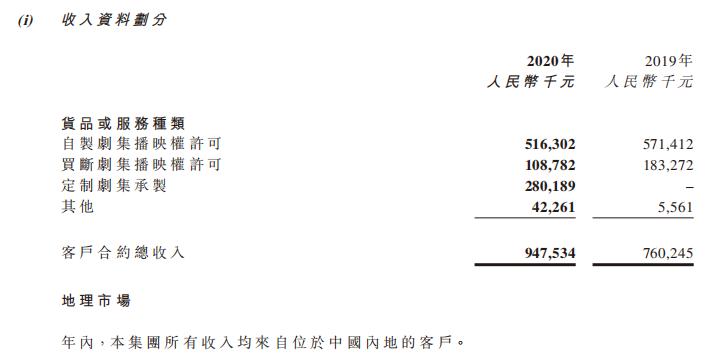 2020年,公司制作及出品的6部电视剧和7部网络电影,包括在央视热播的《小娘惹》。收入增加的原因在于,2019年仅有1部电视剧由集团自行开发并以固定费用授权或销售给客户,去年则达到了6部。