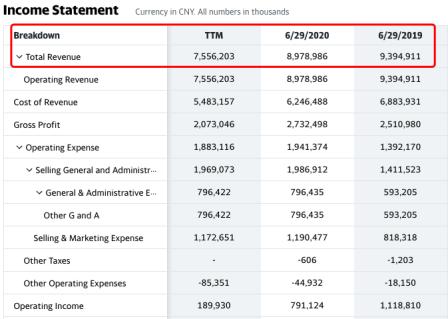 而TTM数据显示,受疫情影响最坏的2020全年数据,其总营收近76亿元,相比于2020财年的近90亿元,下降明显。这也意味着普遍看,2020年绝大部分加盟店或许已经处在盈亏线上,因为营收下降的同时,名创优品的门店数仍在持续增长。