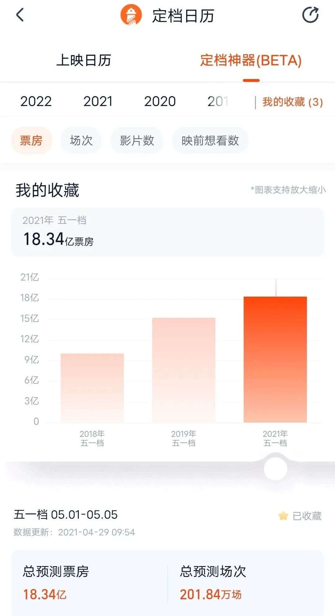 相比2019年五一档四天15亿元的成绩,2021五一档将有望再次刷新同档期记录。