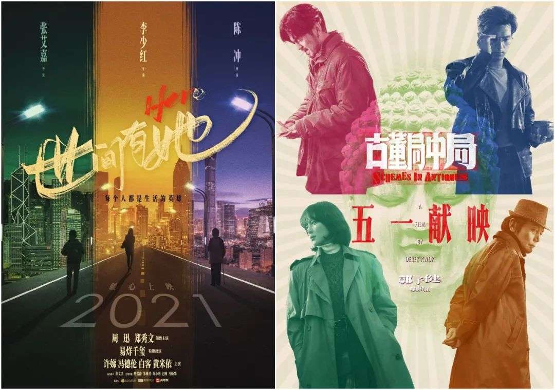 其次,档期影片的频繁进出,也引起了广泛地关注。其中,有原定五一档上映的,由张艾嘉、李少红、陈冲导演,易烊千玺、周迅等明星主演的《世间有她》; 也有由郭子健导演、雷佳音、李现、辛芷蕾、葛优主演的《古董局中局》。