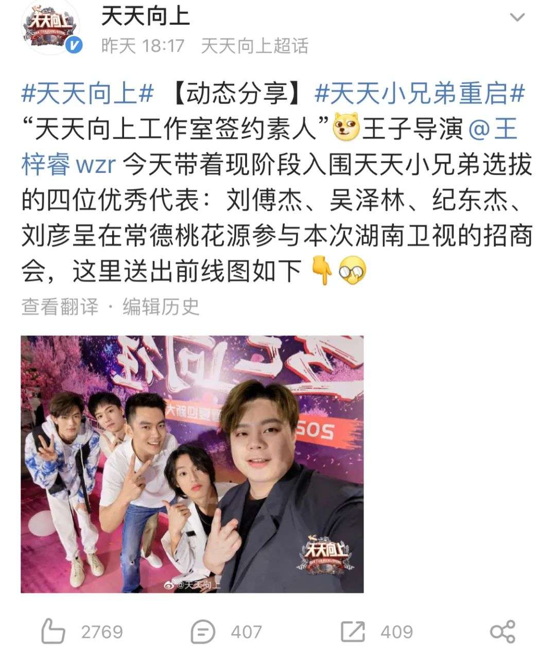 目前《天天向上》也展开了第二批天天小兄弟的选拔,并打造天天小兄弟独立成团的新玩法,引来73家经纪公司纷纷输送选手,等待借此国民综艺一举成名。
