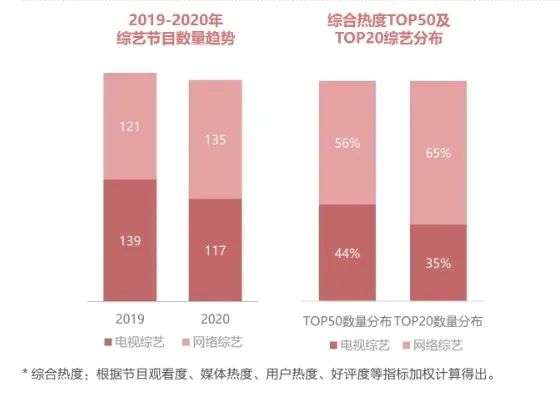 艺恩数据显示,2020年网台综艺节目共252档,相较2019减少了8档,其中网综数量增多、台综数量减少,整体热度呈现上涨趋势。