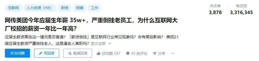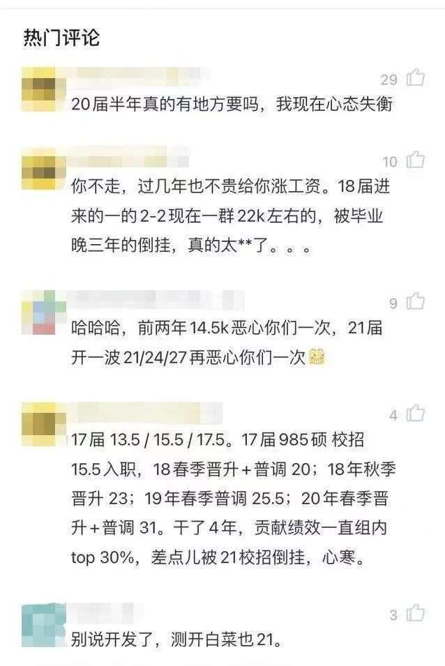 一位负责5年招聘的HR说,薪资倒挂除了与公司涨薪机制有关外,还有就是这个市场薪资每年本身就在逐渐提高,当然也与各大互联网公司之间的相互竞争有关系,企业都想为了能够在校招中录取更优质的毕业生,因此为公司输送新鲜血液而进行加价。