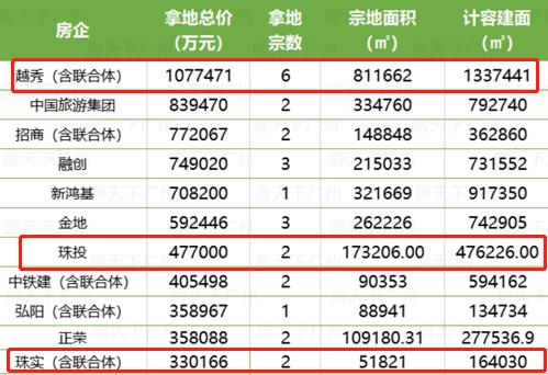 批量集中供地,为了避免流拍,影响市场情绪,稳定国资价格,国企必须要兜底。此次土拍中,广州本土房企之一的越秀地产(含联合体)在拿地金额、总数、面积上均排名第一,拿地6宗、总价107.7亿元。越秀、珠江投资、珠江实业等本地国企,合计拿了10宗地,基本都是底价成交。