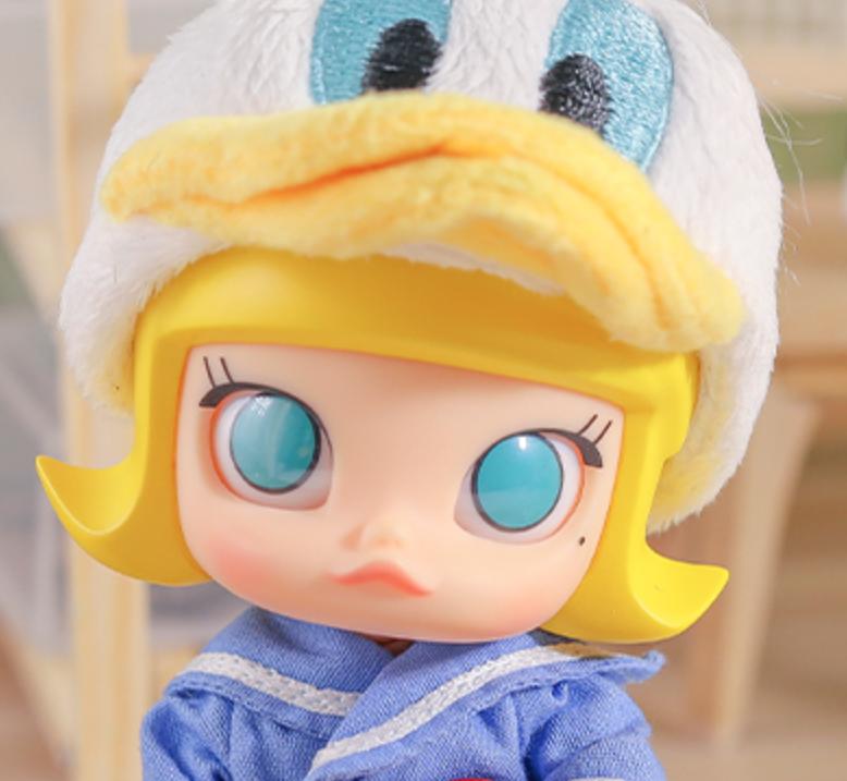 粉红的脸蛋、蓝色的大眼睛,搭配卷起的黄色头发和微翘的嘴唇,这是时下潮玩界最火的IP形象——Molly。