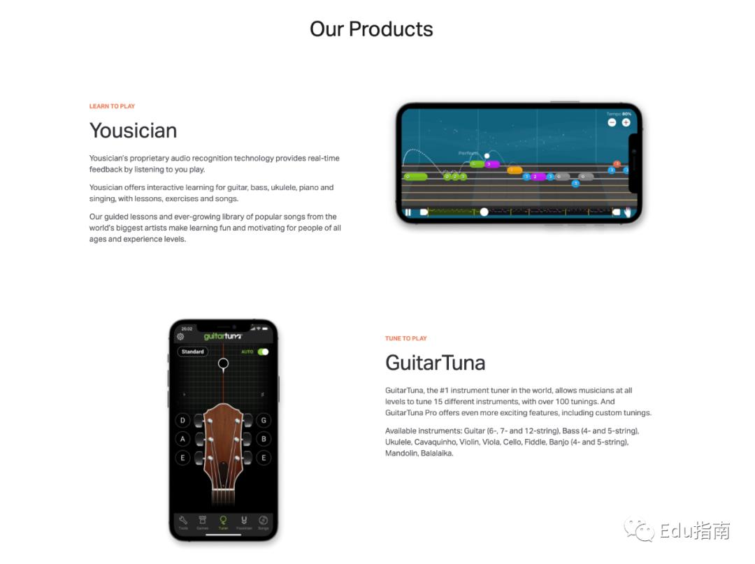 Yousician是一个学习和播放音乐的互动平台。有两款软件产品,音乐教育应用程序Yousician和吉他调音应用程序GuitarTuna。两款软件月活人数达2200万。