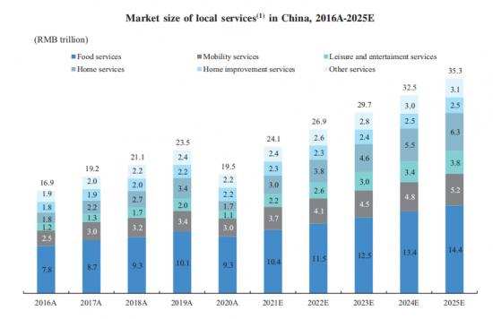 哈啰的招股书显示,本地生活服务在未来五年是一个极具想象力的市场。2025年中国本地生活服务市场规模将从2020年的19.5万亿元人民币,增长至35.3万亿元人民币,年复合增长率达12.6%。而本地生活服务在线上渗透率目前还是比较低的水平,有望从2020年的24.3%,增至2025年的30.8%。
