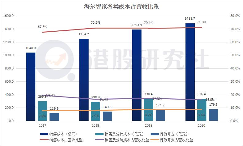同时,根据2021年Q1业绩报告,海尔智家的营业总成本515.11亿元,同比增涨23.35%;其中,营业成本391.7亿元,销售费用78.32亿元,管理费用21.25亿元。在营业成本和销售费用居高不下的情况下,后续是有可能挤压总体利润空间的。