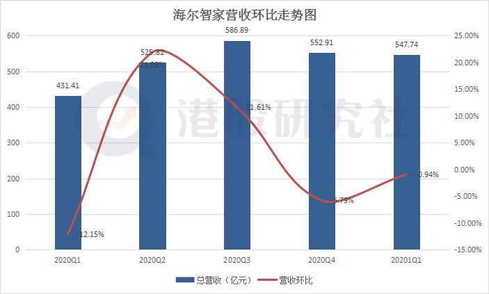 继格力、创维、海信之后,海尔智家于4月29日晚间发布了本年度Q1业绩报告。