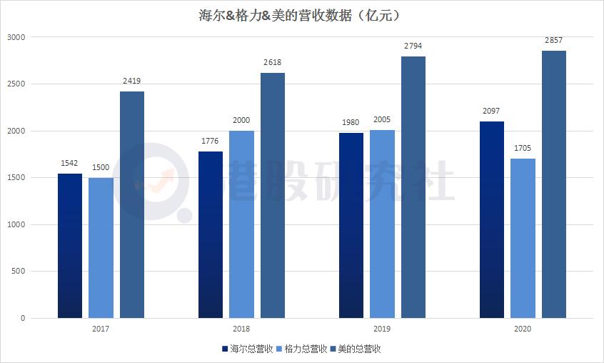 以目前A股的市值排名来看,美的,格力,海尔,分别为5879.88亿元,3525.82亿元,3112亿元;海尔智家H股为3155亿港元。与格力相差不远,但与美的的市值差距依然较大。
