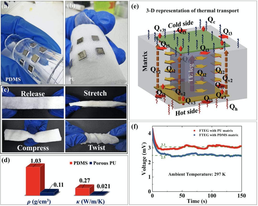 2、具有超低导热系数的多孔聚氨酯(PU)基体提高了输出电压;