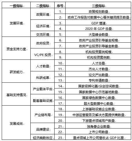 36氪研究院筛选出46个数据中心重点城市参与数据中心发展指数研究,并构建由5个一级指标、12个二级指标、23个三级指标组成的综合指数评价体系。一级指标包括发展环境、资金支持力度、研发能力、基础支持情况和发展成效,从5个维度全面、综合分析城市数据中心发展情况。
