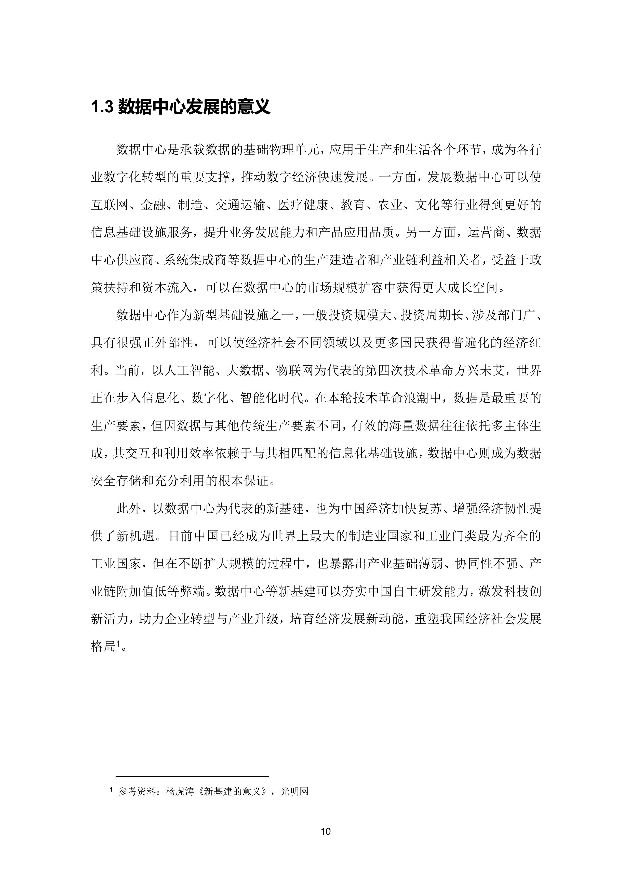 数据中心是承载数据的基础物理单元,是算力基础设施的重要组成部分,是促进5G、人工智能、云计算等新一代数字技术发展的数据中枢和算力载体,逐渐成为各行业数字化转型的重要支撑,对于数字经济增长具有重要助推作用。2020年12月,发改委等四部委印发《关于加快构建全国一体化大数据中心协同创新体系的指导意见》(发改高技〔2020〕1922号),彰显数据中心新基建的重要意义。