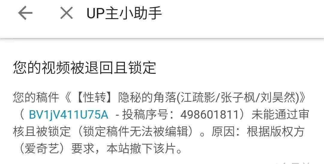 另一位剪刀手发现声明发表之后她在19年剪的《长安十二时辰》的衍生视频也被下架,在申述时给到的回复是B站收到了长视频网站的法务文件,法务文件给出了明确的BV号。