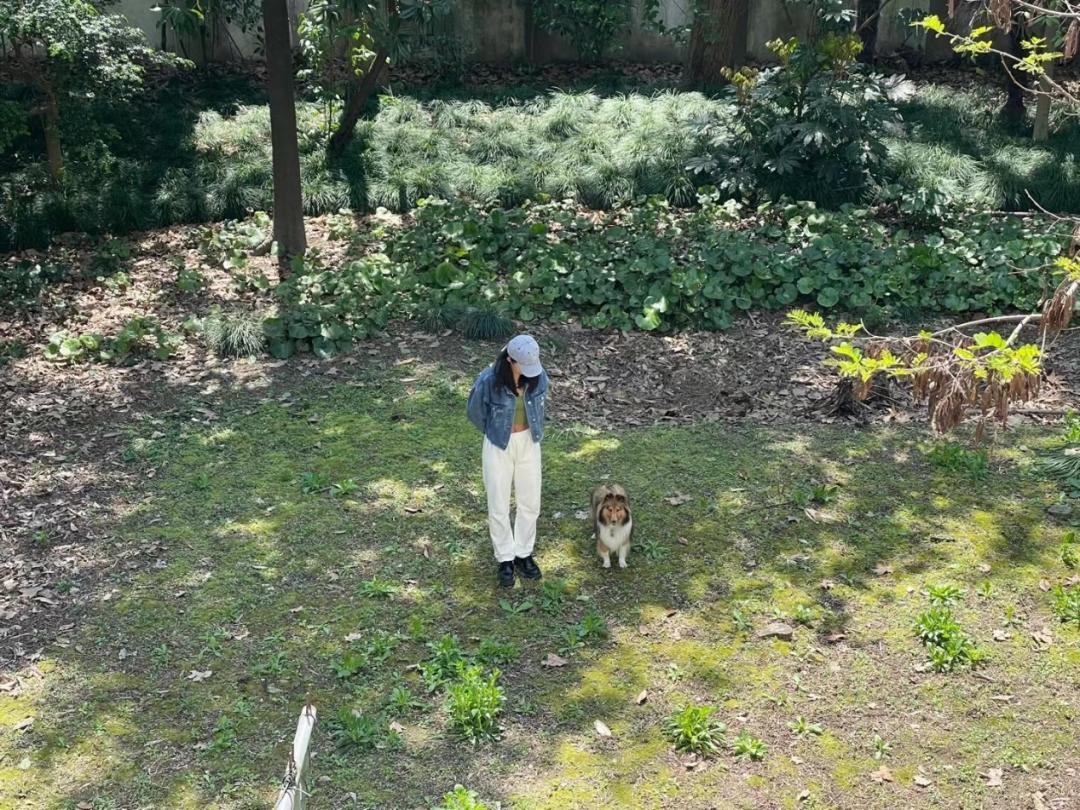 在小区楼下的竹子和喜乐蒂/受访者供图