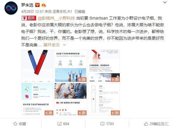 发生在这个过程中的故事也足够动荡剧烈,又足够有戏剧性:比如YOOZ柚子的创始人蔡跃栋(同道大叔)被称为“第一个上岸的自媒体人”,在做电子烟前,他专职写作星座情感的运势分析;再比如被调侃为“行业冥灯”的罗永浩声明自己要创办自己的电子烟品牌“小野”之后的半小时里,电子烟行业就因为监管而“全网下架”……