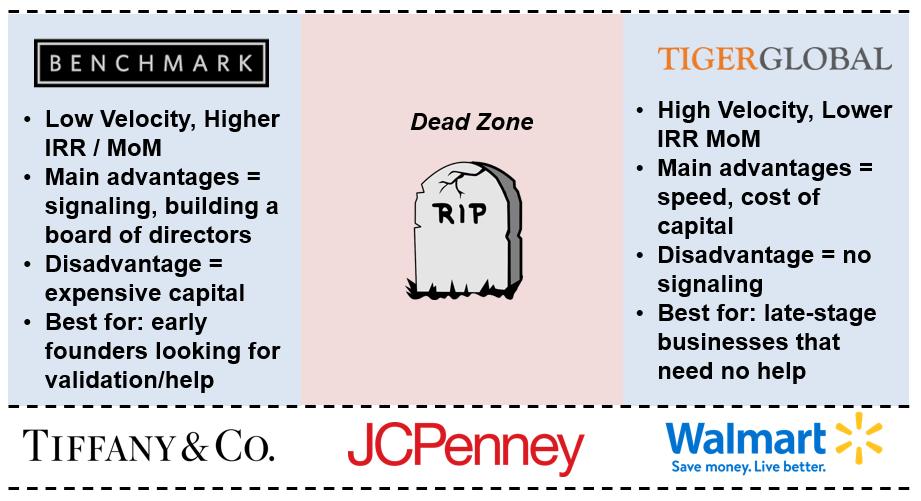 对于创始人来说缺乏顶级品牌/信号传递价值的基金,这会迫使他们到老虎基金的主场去竞争
