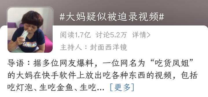 更有甚者,为了变现赚钱,打着老年网红的幌子,一方面压榨老年人,一方面为引来围观。在以工作要求为借口的手段中,老年人无法抽离,也不能抽离。