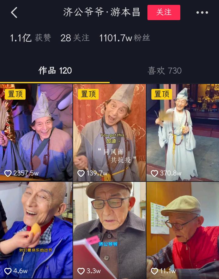 而为了流量和变现,后方的策划团队也不得不往这方面靠拢,许多老年网红必定在一波波内卷中塑造成“一模一样”的形象。