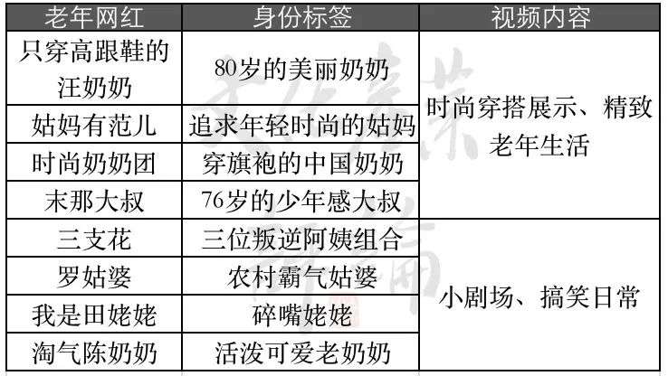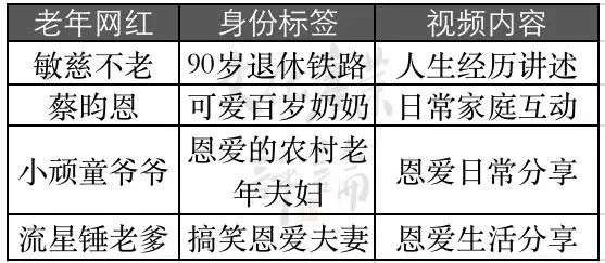 在短视频平台上,专注传播价值的“银发网红”也不在少数,例如以汪奶奶、末那大叔为代表的老年时尚价值和以三支花、罗姑婆为代表的“萌萌哒”老年生活哲学。