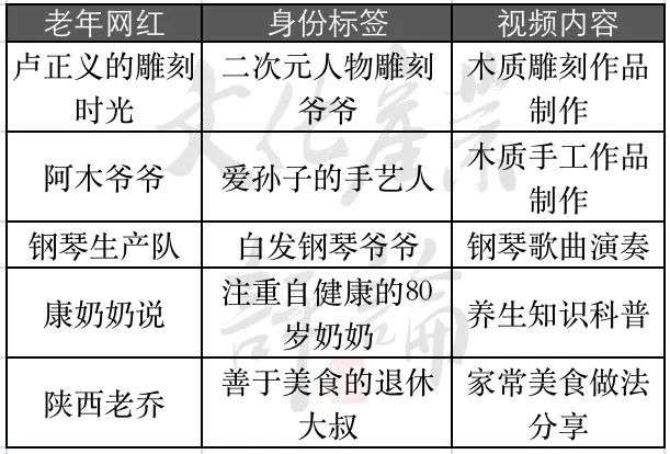 其实,作为“网红”的细分角色,“银发网红”几乎表现出和当年“网红”发展一样的进程:从混乱到有序,从单一到丰富。文化产业评论(ID:whcypl)对当下较为知名的“银发网红”进行统计梳理,得出了以下四类内容成熟且制作水平稳定的“银发网红”类型。