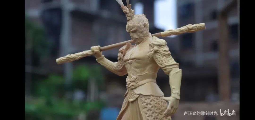 比方说,和阿木爷爷一样凭借手艺出圈的卢正义爷爷,在《黑神话:悟空》推出实机演示视频不久,他就雕刻出了游戏中的悟空形象,其精致程度让人惊呼这乃是大神之作。