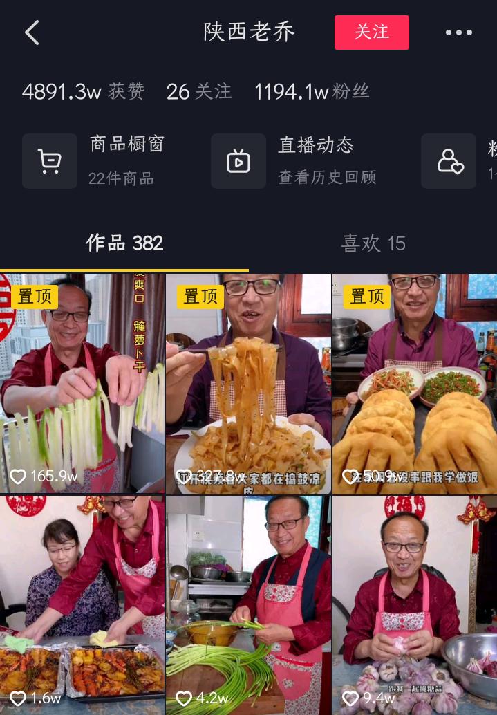 在抖音上分享家常小吃做法的退休大叔老乔,穿着一身喜庆的围裙后立马变成大厨,在短短的一两分钟视频里,老乔将凉皮、糖蒜、蛋挞等日常美食的制作方法利落展示,知识点极多,但却丝毫不显拖沓。