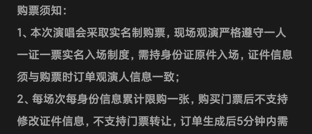 不止是现场横幅,演唱会开票前,大麦官方便发文提醒粉丝警惕黄牛哄抬票价、防止网络诈骗。抢票环节,大麦严格执行“每场次每身份信息限购一张”及“实名制购票+实名制入场”的规则,有效杜绝了黄牛的浑水摸鱼。