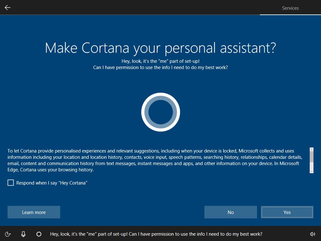 从 1703 版本开始,首次进入系统时,小娜的声音正式出现了,可能很多人电脑的「初啼」就这样被小娜夺走了。这个功能一直被沿用至今,不过在 PC 上,用键鼠操作远比语音更高效,个人认为这个功能实在是有些鸡肋。
