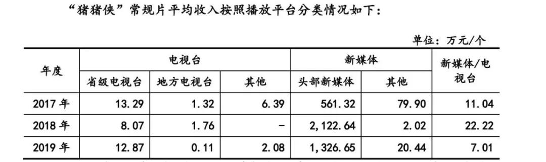 而发行收入方面,猪猪侠则依赖于视频网站。来自于优爱腾芒的收入占营业收入比例近50%。并且相比于影视剧、综艺,儿童动画的价格可以说是“极低”。2018年视频平台曾大幅提高采购价格,但经过高峰后2019年价格整体都有所回落。