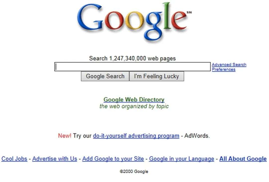 千禧年伊始的谷歌界面。图片来源:谷歌