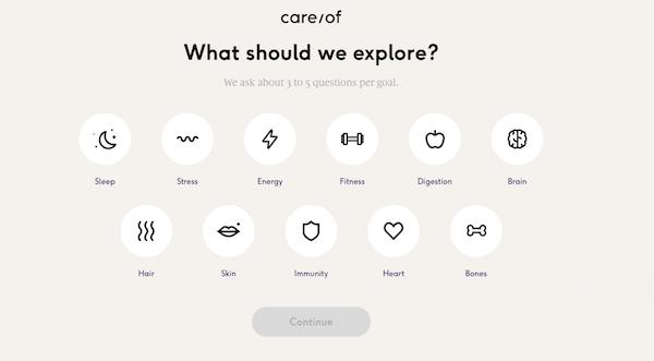 成立于2016年的营养品定制化初创公司Care/of就是这样一家公司,创始人是互联网男装品牌Bonobos的前高管Craig Elbert和拥有来自医疗保健领域经历的Akash Shah。用户首先要进行一个简短的问卷调查,对个人基本信息、保健品摄入习惯&历史、家族病史、未来健康目标等问题的回答将会为用户生成定制的保健品订阅建议,自从发布已经有超500万人参与了问卷调查。