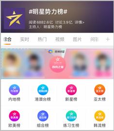比如粉丝们最看重的“明星势力榜”,除了内地榜、新星榜之外,还有港澳台、亚太、欧美、韩流榜等地区榜,甚至有应选秀热潮诞生的练习生榜。