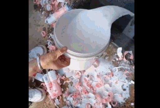 粉丝们为了投票,只能大量购买这种牛奶,并且开盖扫描里面的二维码。而被扫码过后的牛奶,粉丝们也喝不完,所以只能被直接倒掉:
