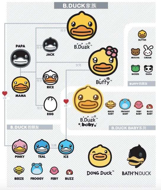 在最初借力于世界知名事件创作出IP之后,小黄鸭家族也在推出新角色---身份是小黄鸭的亲人或朋友,版权方希望以此顺利的延展,并让新角色能借力于小黄鸭启动人气。