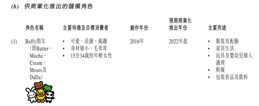 德盈2017年推出了面向女性的Buffy和面向婴童市场的小黄鸭Baby,预计在2020年推出的其他储备新角色还有Buffy的朋友们(Butter、Mocha、Cream、Mose及DaDa)。