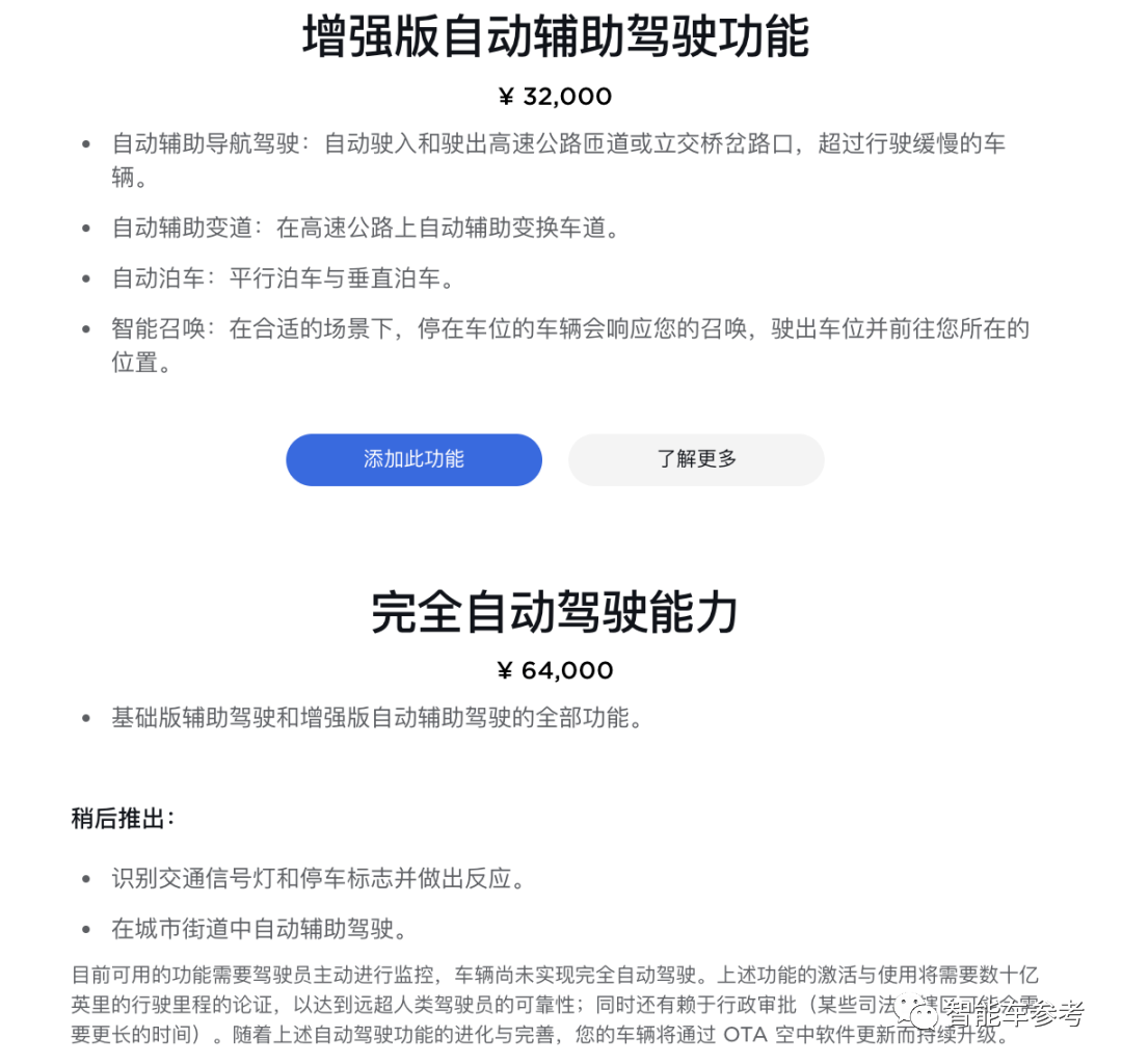 多花32000块钱,得到从“自动辅助”升级到“完全自动”,是不是看起来很赞呢?但实际上,这套系统的能力“无限期”被定格在了L2级。